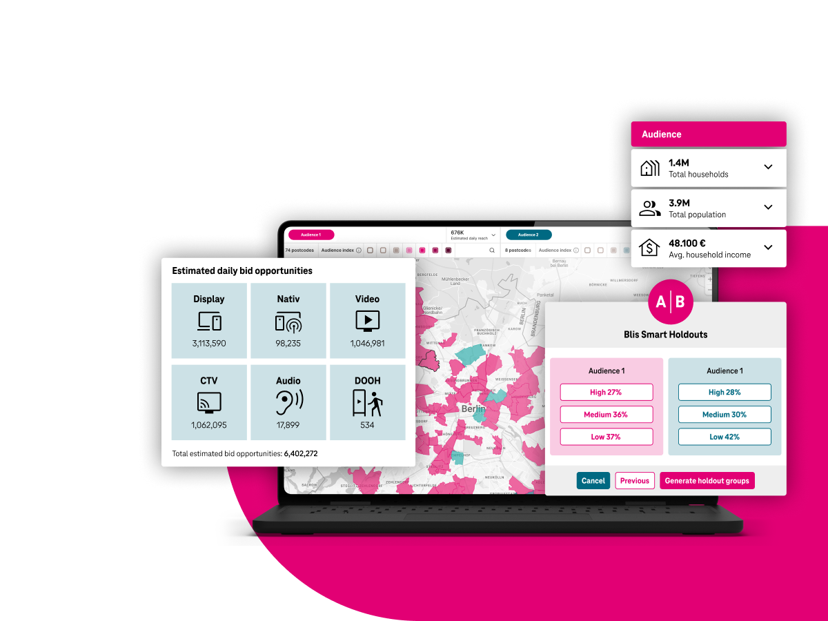 Weniger Identifier bedeuten weniger Reichweite. Gleichzeitig adressieren immer mehr Kampagnen dieselben IDs - das treibt Preise und lässt Potenziale ungenutzt. Die T Advertising Platform setzt auf Telco-Daten als Fundament und ermöglicht ID-less Geo-Aktivierung: Du erreichst Zielgruppen, die im reinen ID-Targeting unsichtbar bleiben. Das schafft zusätzliche Reichweite und macht deine Kampagnen effizienter - weil du nicht ausschließlich im überlaufenen ID-Markt einkaufen musst.